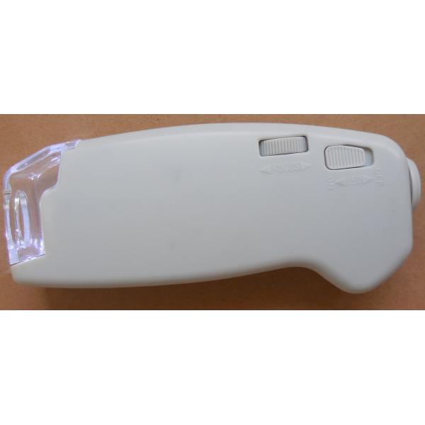Illuminated hand-held surface microscope with a built-in lamp for surface inspections. Magnification 40x, and equipped with a focus wheel to adjust the focus, a measuring reticle and an adjustable direct light source. Delivery in soft pouch.